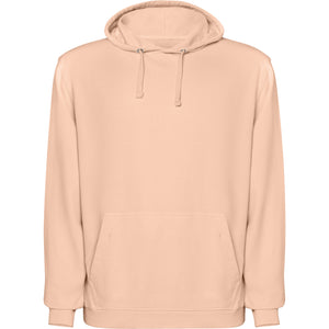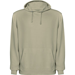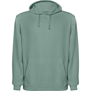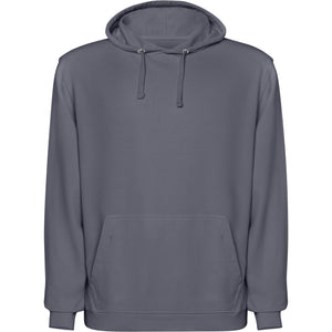 Felpa unisex con cappuccio in cotone non garzato con effetto lavato. Tasca a marsupio. Polsini e vita a coste 2x1 con elastan. Coulisse piatta tono su tono con occhielli in metallo. Cuciture nastrate in tessuto coordinato.